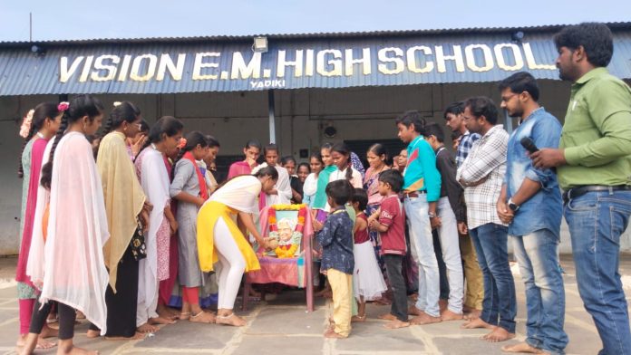 యాడికి పట్టణ కేంద్రంలో ఉన్న విజన్ స్కూల్ నందు డా” ఏ.పీ.జే.అబ్దుల్ కలామ్ జయంతి సందర్భంగా విజన్ ఉపాధ్యాయ బృందం,విద్యార్థులు కలసి ఆయన చిత్రపటానికి పూల మాల వేసి టెంకాయ సమర్పించి నివాళులు అర్పించారు.ఈ సందర్భంగా పాఠశాల కరస్పాండెంట్ విశ్వనాథ్ మాట్లాడుతూ ఆయన మధ్య తరగతి కుటుంబంలో జన్మించాడు అని వార్త పత్రికలను పంచుతూ చదువుకున్నారని, ఫిజిక్స్ లో పట్టా పొంది ఇస్రో లో శాస్త్రవేత్త గా పని చేస్తూ భారత రక్షణ విభాగంలో మిస్సైల్స్ ను కనుగొన్నారని, అలాగే గుండె కు అమర్చే స్టెంట్ ను కనుగొన్నారని, అలాగే గ్రామీణ ప్రాంత విద్యార్థులకు ఉపయోగపడే ట్యాబ్ ను కనుగొని ఎంతో మంది విద్యార్థుల సందేహాలను నివృత్తి చేశారని, అలాగే రాష్ట్రపతిగా పని చేశారని, ఆయన చేసిన సేవలకు గుర్తుగా భారత రత్న అవార్డును భారత ప్రభుత్వం అందజేసిందని తెలియజేయడం జరిగింది.ఈ కార్యక్రమంలో విజన్ ఉపాధ్యాయ బృందం మరియు విద్యార్థులు పాల్గొన్నారు.
