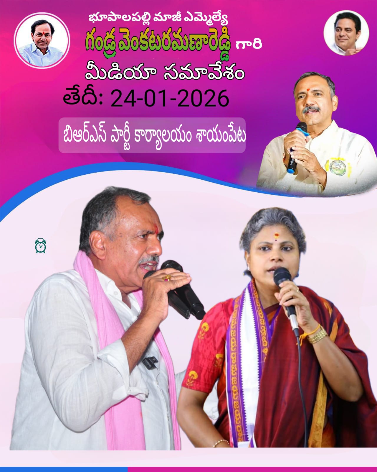 రేపు మధ్యాహ్నం: 2:00గంటలకు శాయంపేట మండల కేంద్రంలోని బిఆర్ఎస్ పార్టీ కార్యాలయంలో, భూపాలపల్లి అభివృద్ధి ప్రదాత మాజీ శాసనసభ్యులు గండ్ర వెంకటరమణా రెడ్డి* గ మాజీ ఐపీఎస్ అధికారి, స్వెరోస్ వ్యవస్థాపకులు& బిఆర్ఎస్ పార్టీ రాష్ట్ర నాయకులు ఆర్ఎస్ ప్రవీణ్ కుమార్ కలిసి ప్రింట్ అండ్ ఎలక్ట్రానిక్ మీడియా సమావేశంలో పాల్గొంటారు .కావున ప్రింట్ అండ్ ఎలక్ట్రానిక్ మీడియా మిత్రులు, వివిధ గ్రామాల ప్రజా ప్రతినిధులు, బిఆర్ఎస్ పార్టీ మండల నాయకులు, గ్రామశాఖ అధ్యక్షులు, ఉపాధ్యక్షులు, ప్రధాన కార్యదర్శిలు ,యూత్ నాయకులు, సోషల్ మీడియా కన్వీనర్లు, కార్యకర్తలు అత్యధిక సంఖ్యలో పాల్గొనగలరు…. ఇట్లు