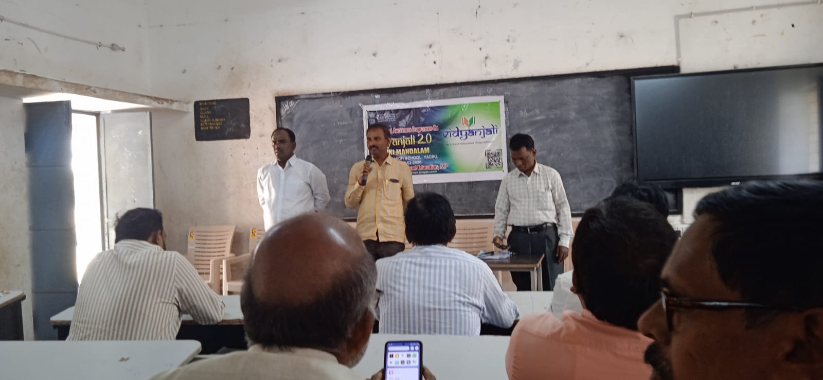 యాడికి జిల్లా పరిషత్ ఉన్నత పాఠశాల యందు మండల విద్యాధికారి 2 సీతారామాంజనేయులు ఆధ్వర్యంలో జరుగుతున్న విద్యాంజలి 2.0 ఒక రోజు ఓరియెంటేషన్ శిక్షణా తరగతుల ను సర్వశిక్షా అభియాన్ అనంతపురం నుండి వచ్చిన కమ్యూనిటీ మొబలైజర్ (సీఎంఓ) చంద్రశేఖర్ నాయుడు పరిశీలించిన పిదప, శిక్షణా తరగతుల కు హాజరైన ప్రధానోపాధ్యాయుల తో మాట్లాడుతూ కేంద్ర, రాష్ట్ర ప్రభుత్వాలు భాగస్వామ్యంగా చేపడుతున్న విద్యాంజలి 2.0 కార్యక్రమం ద్వారా ప్రభుత్వ పాఠశాల ల యందు చేపట్టే పలు అభివృద్ధి కార్యక్రమాల కు ప్రజలు, స్వచ్ఛంద సంస్థలు, దాతలు, పూర్వ విద్యార్థులు భాగస్వామి గా వారి గ్రామం లోని ప్రభుత్వపాఠశాల అభివృద్ధి కి తమ వంతు కృషి చేసి ప్రభుత్వ పాఠశాల ల అభివృద్ధి కి కృషి చేయాలని తెలిపారు. ఈ శిక్షణ కార్యక్రమం లో మండల విద్యాధికారి 2 సీతారామాంజనేయులు,సీఎంఓ చంద్రశేఖర్ నాయుడు మండలము లోని అన్ని పాఠశాలల ప్రధానోపాధ్యాయులు పాల్గొన్నారు