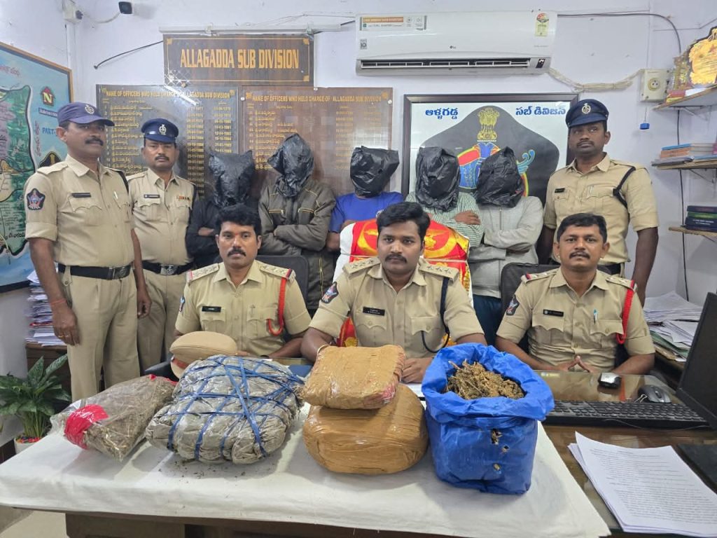 నంద్యాల జిల్లా SP శ్రీ సునీల్ షెరాన్ IPS, Addl SP శ్రీ యుగంధర్ బాబు, ఆదేశాల మేరకు , ఆళ్లగడ్డ DSP శ్రీ కె.ప్రమోద్, సూచన మేరకు శిరివెళ్ల సర్కిల్ CI శ్రీ రాము,ఆద్వర్యంలో, గంజాయి అక్రమ రవాణాపై ప్రత్యేక నిఘా ఏర్పాటు చేయబడింది.ఈ క్రమంలో, శిరివెళ్ల పోలీస్ స్టేషన్ ఇన్‌చార్జ్ ఎస్‌ఐ జయప్ప కి అందిన ముందస్తు సమాచారం ప్రకారం, శిరివెళ్ల మండలం బోయిలకుంట్ల గ్రామానికి చెందిన జింకల మద్దిలేటి (A1) వద్దకు, తూర్పు గోదావరి జిల్లాకు చెందిన కోడూరు శ్రీనివాసు (A2) గంజాయి తీసుకొని బోయిలకుంట్ల గ్రామ సమీపంలో ఉన్న కాశిరెడ్డినాయన ఆశ్రమం వద్దకు వస్తాడని తెలిసింది.దీంతో 30.01.2026 తేదీ సాయంత్రం 4.00 గంటల సమయంలో, శిరివెళ్ల పోలీస్ స్టేషన్ ఇన్‌చార్జ్ ఎస్‌ఐ జయప్ప మరియు వారి సిబ్బంది కలిసి బోయిలకుంట్ల గ్రామ సమీపంలోని కాశిరెడ్డినాయన ఆశ్రమం వద్దకు వెళ్లారు. అక్కడ ఐదుగురు వ్యక్తులు గంజాయిని ప్యాక్ చేసి అక్రమంగా రవాణా చేసేందుకు సిద్ధంగా మాట్లాడుకుంటూ ఉండగా, వారిని పట్టుకొని తనిఖీ చేయగా,జింకల మద్దిలేటి (A1) వద్ద నుండి – 2 కిలోల గంజాయి,కోడూరు శ్రీనివాసు (A2) వద్ద నుండి – 1 కిలో గంజాయి, దండబోయిన గురుస్వామి (A3) వద్ద నుండి – 1 కిలో గంజాయి, షేక్ అబ్దుల్ నబీ (A4) వద్ద నుండి – 1 కిలో గంజాయి, మొఘల్ గఫార్ భేగ్ (A5) వద్ద నుండి – 1 కిలో గంజాయి,కలిపి మొత్తం 6 కిలోల గంజాయిని స్వాధీనం చేసుకొని, అదే రోజు సాయంత్రం 6.30 గంటల సమయంలో ఐదుగురు ముద్దాయిలను అరెస్టు చేయడమైంది.విచారణలో A1 జింకల మద్దిలేటి పై ఇప్పటికే కృష్ణా జిల్లా అవనిగడ్డ పి.ఎస్., ఢిల్లీ, నంద్యాల జిల్లా మహానంది పి.ఎస్., నంద్యాల తాలూకా యూపీఎస్లలో కలిపి మొత్తం 4 గంజాయి కేసులు నమోదై ఉన్నట్లు తెలిసింది. ఇతనిపై రోడీ షీట్ మరియు సస్పెక్ట్ షీట్ కూడా ఉంది. గతంలో ఇతడు ఒరిస్సా నుండి గంజాయి తెచ్చేవాడు. ఆ క్రమంలో తూర్పు గోదావరి జిల్లాకు చెందిన కోడూరు శ్రీనివాసు పరిచయం అయ్యాడు. ప్రస్తుతం అదే పరిచయంతో, కోడూరు శ్రీనివాసు ద్వారా ఒరిస్సా నుండి గంజాయి సరఫరా చేసుకుంటున్నట్లు విచారణలో వెల్లడైంది.ఈ సందర్భంగా ఆళ్లగడ్డ డీఎస్పీ శ్రీ కె. ప్రమోద్ , ఆళ్లగడ్డ సబ్ డివిజన్ పరిధిలో గంజాయి అక్రమ రవాణా కు పాల్పడిన వారిపై , రౌడీ షీటర్లు మరియు అసాంఘిక కార్యకలాపాలకు పాల్పడే వారిపై కచ్చితంగా కఠిన చర్యలు తీసుకొని జైలుకు పంపిస్తామని హెచ్చరించారు.
