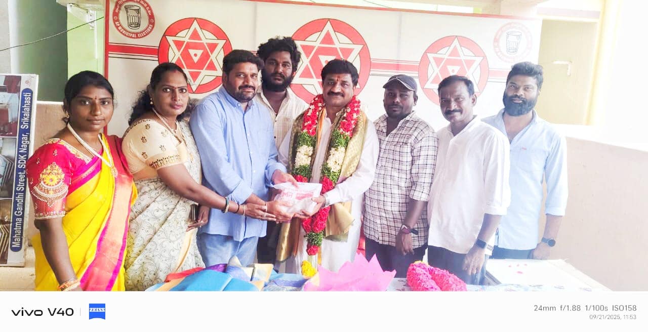 జనసేన పార్టీ నిస్వార్థ సైనికుడు శ్రీకాళహస్తి దేవస్థానం ట్రస్ట్ బోర్డు ఛైర్మన్ గా ఎంపికైన శ్రీ కొట్టే సాయిప్రసాద్ మర్యాదపూర్వకంగా కలిసిన సూళ్లూరుపేట జనసేన పార్టీ మండల అధ్యక్షుడు ఆవుల రమణ, రాయలసీమ జోనల్ కమిటీ నెంబర్ షేక్ మాభాష, జనసేన పార్టీ సీనియర్ నాయకులు ఆవుల దాస్, రామగిరి రేవంత్, చేని సూరి, శంకు సురేష్, వీర మహిళలు పద్మజ, సుజాత, కలిసి శుభాకాంక్షలు తెలియజేశారు