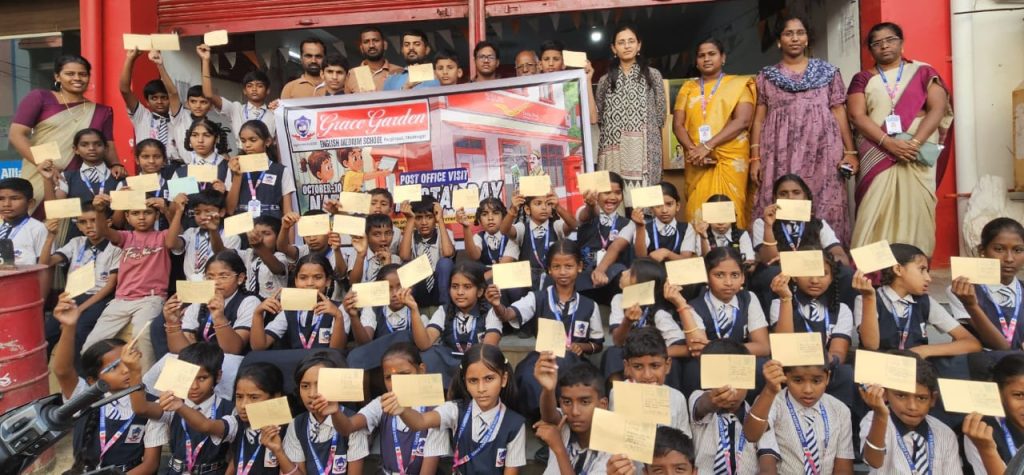జాతీయ తపాలా దినోత్సవం సందర్భంగా ఇండియన్ మాంక్స్ గ్రేస్ గార్డెన్ ఇంగ్లీష్ మీడియం స్కూల్, షాద్నగర్ విద్యార్థులు స్థానిక తపాలా కార్యాలయాన్ని సందర్శించారు. ఈ సందర్శనలో విద్యార్థులు తపాలా విభాగం పనితీరు మరియు లేఖరచన ప్రాముఖ్యత గురించి అవగాహన పొందారు. ప్రతి విద్యార్థి తమ తల్లిదండ్రులకు ఒక హృదయపూర్వక లేఖ రాసి స్వయంగా తపాలా పెట్టెలో వేసి పంపించారు. ఈ సందర్భంగా షాద్నగర్ తపాలా కార్యాలయ సిబ్బంది విద్యార్థులను ఆత్మీయంగా స్వాగతించి, ఒక లేఖ ఎలా పంపబడుతుంది, ఎలా గమ్యస్థానానికి చేరుతుంది. అనే ప్రక్రియను వారికి వివరించారు.తపాలా అధికారి డి. ఎ. ఈశ్వర్ విద్యార్థులను ఉద్దేశించి మాట్లాడుతూ.. ఈ రోజుల్లో తపాలా శాఖ అనలాగ్ ప్రపంచం నుండి డిజిటల్ యుగానికి మార్పు దశలో ఉందని చెప్పారు. భారత తపాలా శాఖ గ్రామీణ భారతాన్ని ఆధునిక భారతదేశంతో కలిపే కీలక వంతెనగా వ్యవహరిస్తోందని ఆయన వివరించారు. విద్యార్థులకు మై స్టాంప్, సుకన్య సమృద్ధి యోజన, పీపీఎఫ్, ఎన్ఎస్సీ మరియు ఆర్డీ ఖాతాలు వంటి పథకాలను వివరించి, చిన్న వయసులోనే పొదుపు మరియు డబ్బు నిర్వహణ పాఠాలను నేర్చుకోవడం ఎంత ముఖ్యమో తెలిపారు.గ్రేస్ గార్డెన్ స్కూల్ ప్రతినిధి ఆశిష్ బాబు మాట్లాడుతూ… వేగంగా మారుతున్న డిజిటల్ యుగంలో సంప్రదాయ సమాచార పద్ధతులను అర్థం చేసుకోవడం ద్వారా ప్రస్తుతాన్ని లోతుగా తెలుసుకోవచ్చని అన్నారు. “భూతకాలాన్ని అర్థం చేసుకోవడం ప్రస్తుతాన్ని స్పష్టంగా గ్రహించడానికి, భవిష్యత్తు సమస్యలను పరిష్కరించడానికి దారి చూపుతుంది” అని ఆయన పేర్కొన్నారు. పాఠ్యపుస్తకాలకు అతీతంగా నిజజీవితాన్ని అర్థం చేసుకునే దిశగా విద్యార్థులకు ఈ సందర్శనం ఉపయుక్తమని కూడా అన్నారు.తపాలా సహాయకురాలు మౌనికా చౌహాన్, పోస్టుమెన్లు జమీల, హరికృష్ణ, విక్రమ్ రెడ్డి, సాయి కుమార్ మరియు అభిషేక్ విద్యార్థులతో మాట్లాడి తపాలా కార్యాలయ రోజువారీ పనితీరును లేఖల వర్గీకరణ నుండి ప్రజా సేవల నిర్వహణ వరకు చూపించారు.