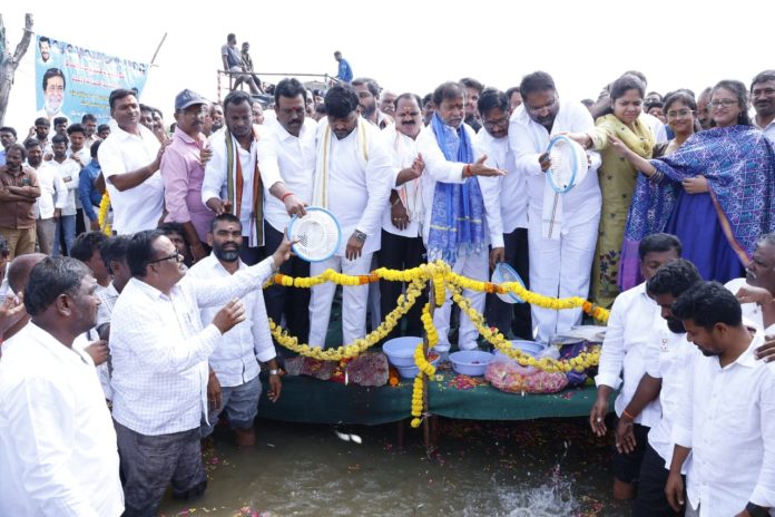 Homeఆంధ్రప్రదేశ్సంగం బండ రిజర్వాయర్, మక్తల్ పెద్ద చెరువులో చేపపిల్లలను వదిలిన మంత్రులు