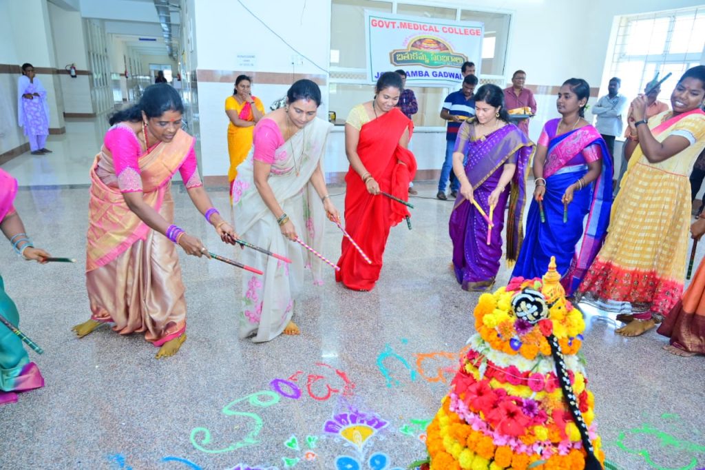 గద్వాల నియోజకవర్గంలో బతుకమ్మ ఘనంగా జరుపుకున్న ఎమ్మెల్యే సతీమణి బండ్ల జ్యోతి బతుకమ్మ పాటలతో కోలాటాలతో సంబరాలు చేసుకున్నారు అలాగని వీరి వెంట మహిళలు కాంగ్రెస్ సంఘాల సభ్యులు మహిళల జరుపుకున్నారు