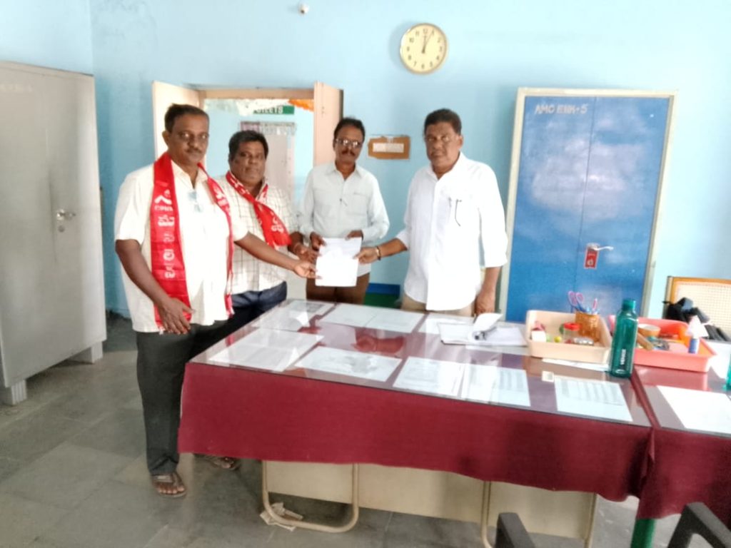 ఈరోజు ఏన్కూరు మార్కెట్ కేంద్రాన్ని సిపిఐ ఎంఎల్ మాస్ లైన్… అఖిలభారత ఐక్య రైతు సంఘం బృందం వెళ్లి రైతులను. కొనుగోలుదారులను. కార్మికులు కలిసి రైతాంగ సమస్యలు పై ఏన్కూరు మార్కెట్ కార్యదర్శి బి బజార్ నీ కలిసి వినతి పత్రం ఇవ్వడం జరిగింది. ఈ సందర్భంగా సిపిఐ ఎంఎల్ మాస్ లైన్ ఖమ్మం జిల్లా నాయకులు ఎస్కే లాల్ మియా అఖిలభారత ఐక్య రైతు సంఘం జిల్లా నాయకుడు కొండే వెంకటేశ్వర్లు మాట్లాడుతూ ఈ సీజన్లో అధిక వర్షాల వల్ల పత్తి పంటలు పాడైపోయినాయి ఎకరానికి నాలుగు క్వింటాలు రాని పరిస్థితి దిగుబడి ఉంది. తడిసిన పత్తిని నిబంధనలు సడలించి కొనుగోలు చేయాలని. స్వామినాథన్ సిఫారసును అమలు చేయాలని. ఏన్కూరు మండల కేంద్రంలో ప్రభుత్వం సిసిఐ ద్వారా పత్తిని కొనుగోలు చేయాలని కింటా పతికి 10,500 ఇవ్వాలని డిమాండ్ చేశారు ఈ కార్యక్రమంలో ఎస్ కే జానీ మియా గడ్డం వెంకన్న తదితరులు పాల్గొన్నారు