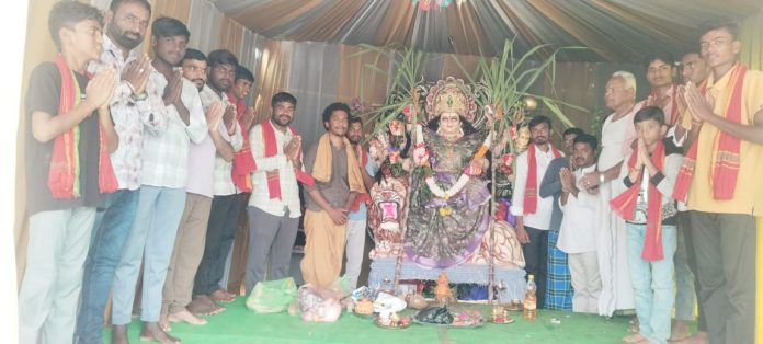 సిద్దిపేట జిల్లా: దౌల్తాబాద్ మండలం సూరంపల్లి గ్రామంలో మున్నూరు కాపు సంఘం మరియు యువత ఆధ్వర్యంలో దుర్గాదేవిని సంఘం ఆధ్వర్యంలో ఘనంగా ఈరోజు నవరాత్రులు ఉత్సవాల సందర్భంగా ఆలయంలో ప్రత్యేకమైన భక్తి వైభవంతో ఆలయంలో వేద పండితుల మంత్రాలు అలంకరణలో మధ్య అర్చకులు పద్ధతిలో పూజను ప్రారంభించడం జరిగింది. ప్రత్యేకమైన హోమదీపాలతో ఆలయ ప్రాణంగం పవిత్ర వాతావరణం సంతరించుకుంది. అమ్మవారు పూజ కార్యక్రమంలో గణపతి పూజ చండీ హోమం గణపతి హోమం ప్రత్యేకమైన పూజలు నిర్వహించడం జరిగింది. వేదమంత్రాలు నాదం హర్షకుల అవగాహనాలతో పూజలో నిర్వహించడం జరిగింది భక్తులు తమ కుటుంబ సభ్యులు దేవికి ప్రత్యేకమైన పూజలు చేయడం జరిగింది. ప్రజలు భక్తులు తమ కుటుంబ శ్రేయసి ఆరోగ్యం. ఐశ్వర్యం. గ్రామ ప్రజలు క్షేమం కోసం దేవుని పూజించడం జరిగింది. వేదమంత్రాలు నాదం అర్చకుల అవగాహనాలతో భక్తులు సల్లగా ఉండాలని ఊరు గ్రామ ప్రజలు చల్లగా ఉంచాలని వారు కోరుకోవడం జరిగింది. మున్నూరు కాపు సంఘం ఆధ్వర్యంలో దుర్గాదేవి శరన్నవరాత్రి ఉత్సవాలు సందర్భంగా అన్నదానం కార్యక్రమం నిర్వహించడం జరిగింది. సూరంపల్లి గ్రామ ప్రజలు అందరూ కలిసి సుఖశాంతులతో ఉండాలని అమ్మవారి ఆశీస్సులు వారందరిపై ఉండాలని ఈ కార్యక్రమాన్ని గ్రామ ప్రజలు అందరూ విజయవంతం చేయాలని వారు కోరుకోవడం జరిగింది .ఇందులో పాల్గొన్నవారు మున్నూరు కాపు సంఘం పెద్దలు అక్కలు అన్నలు తమ్ముళ్లు యువకులు యువత గ్రామ ప్రజలు పాల్గొనడం జరిగింది.