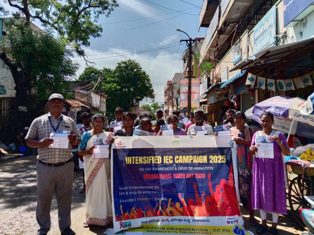 ఆంద్రప్రదేశ్ రాష్ట్ర ఎయిడ్స్ కంట్రోల్ సొసైటీ ఆదేశముల మేరకు జిల్లా వైద్య ఆరోగ్య శాఖ,జిల్లా ఎయిడ్స్ నివారణ మరియు నియంత్రణ విభాగం సహకారంతో ఈరోజు నవజీవన్ ఆర్గనైజేషన్ -సి.సి- పి.యు- ప్రాజెక్ట్ ఆధ్వర్యంలో ” ఇంటెన్షిఫైడ్ ఐ.ఇ.సి క్యాంపెయిన్” కార్యక్రమం ద్వారా హెచ్.ఐ.వి/ఎయిడ్స్ పై అవగాహన సదస్సును సూళ్లూరుపేట లోని ” శ్రీ చైతన్య ఇంగ్లీష్ మీడియం హైస్కూల్” నందు నిర్వహించడం జరిగింది . ఈ కార్యక్రమములో భాగముగా ప్రాజెక్ట్ మేనేజర్ అయిన కె. బాలాజి మాట్లాడుతూ, హెచ్.ఐ.వి/ఎయిడ్స్ వ్యాప్తి కారకాలు, ఎలా వ్యాపించదు, హెచ్.ఐ.వి/ఎయిడ్స్ లక్షణాలు, అవి రాకుండా ఎటువంటి జాగ్రత్తలు తీసుకోవాలి, హెచ్.ఐ.వి/ఎయిడ్స్ వ్యాధిగ్రస్తుల పట్ల వివక్షత చిన్న చూపు లేకుండా ఎలాగా సమాజములో కలసి జీవించాలి, హెచ్.ఐ.వి/ఎయిడ్స్, క్షయ వ్యాధి సంబందం గూర్చి, సుఖ వ్యాధులు మరియు చికిత్స గూర్చి, డ్రగ్స్ వాడకం వలన కలిగే ఇబ్బందులు, కండోమ్ యొక్క ఉపయోగము గూర్చి, హెచ్.ఐ.వి/ఎయిడ్స్ ఏక్ట్ 2017, ఎ.ఆర్.టి మందులు, ఏ.పి.శాక్స్ యాప్ ,టోల్ ఫ్రీ నెంబర్ 1097 గూర్చి తెలుపుతూ, మీ ద్వారా తెలియని వాళ్లకు తెలియజేయమని చెప్పడం జరిగింది. ఈ కార్యక్రమం లో హైస్కూల్ ప్రధానోపాధ్యాయులు టి. నాగరాజు, ఉపాధ్యాయులు యన్. హరి, పి.మునిశేఖర్, యమ్. సోనియా , ఆర్. దివ్య, సి.హెచ్. లావణ్య, ఓ.ఆర్.డబ్ల్యూలు కె.మంజుల, టి. నందిని, పి.ఇ లు మరియు 55 మంది విద్యార్థులు పాల్గొనడం జరిగింది. తదుపరి కోళ్లమిట్ట ఏరియాలో హెచ్.ఐ.వి/ఎయిడ్స్ పై అవగాహన కల్పించడం కోసం మీటింగ్ మరియు ర్యాలీ నిర్వహించడం జరిగింది. ఈ ర్యాలీలో 70 మంది ప్రజలు పాల్గొని విజయవంతం చేయడం జరిగింది. వీరిలో 13 మంది ప్రజలుకు నవజీవన్ సంస్థ ఎ.యన్.యమ్ జి.శ్రీలత ద్వారా హెచ్.ఐ.వి పరీక్షలు చేయించి వారి స్థితిని వారికి తెలియజేయడం జరిగింది.