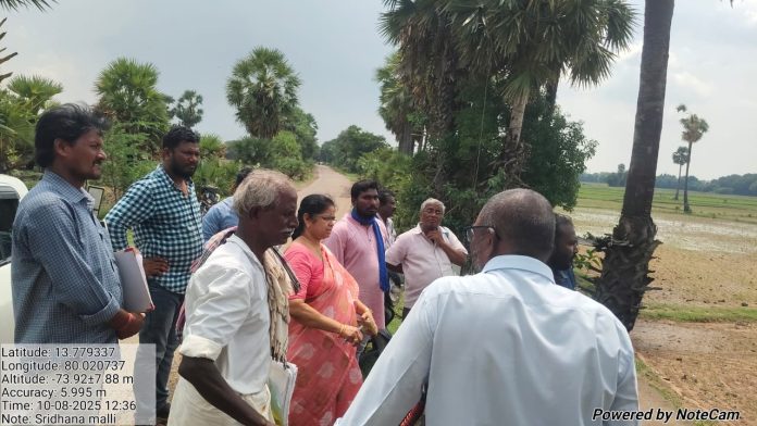దొరవారి సత్రం మండలం శ్రీధనమల్లిలో నెలకొంటున్న సమస్యలపై ( కుల వివక్ష వ్యతిరేక పోరాట సంఘం) పోరాటానికి శ్రీధనమల్లి స్మశానానికి దారి లేక గ్రామస్తులు ఇబ్బందులకు గురవుతున్నారు, స్థానిక గిరిజన కాలనీకి, SC కాలనీకి స్మశాన ఏర్పాటు విషయమై కెవిపిఎస్ (కులవివక్ష వ్యతిరేక పోరాట సంఘం) సుదీర్ఘకాలంగా పోరాటం చేస్తుంది దీనికి స్పందించిన దొరవారి సత్రం ఎమ్మార్వో గారు వారి రెవెన్యూ సిబ్బందితో ఈరోజు శ్రీధనమల్లి గ్రామంలో పర్యటించారు ఈ సందర్భంగా వారి దృష్టికి శ్రీధనమల్లి గ్రామంలో నెలకొన్నటువంటి సమస్యల్ని కెవిపిఎస్ తిరుపతి జిల్లా కార్యదర్శి డమాయి ప్రభాకర్ గారు, ఏపీ డీకేఎస్ రాష్ట్ర నాయకులు కె.వి మునెయ్య గారు తెలియజేశారు తాసిల్దారు గారు సానుకూలంగా స్పందించారు