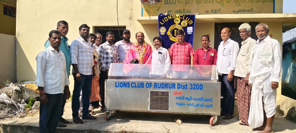 లయన్స్ క్లబ్ ఆఫ్ రుద్రూర్ సీనియర్ సభ్యులు, జిల్లా చైర్మన్ లయన్ శ్యాంసుందర్ పహాడే సహకారంతో రుద్రూర్ మండల కేంద్రంలోని చిక్కడపల్లి గ్రామ కమిటీకి శనివారం శీతల శవపేటికను అందించారు. చనిపోయిన మృతదేహం చెడిపోకుండా ఉండడానికి వాడే శీతల శివపేటిక (డెడ్ బాడీ డీ ఫ్రీజర్) ను అందజేశారు. ఈ సందర్బంగా విలేజ్ కమిటీ పెద్దలు మాట్లాడుతూ.. ఈ రోజుల్లో చనిపోయిన వారి కొరకు అందరూ వాడుతున్నారని ఇంతటి మంచి సేవా కార్యక్రమానికి శ్రీకారం చుట్టి మా కమిటీకి శీతల శవపేటిక అందజేసిన లయన్ శ్యాంసుందర్ పహాడె కు కృతజ్ఞతలు తెలియజేస్తూ వారికి ఘనంగా సన్మానించారు. ఈ కార్యక్రమంలో క్లబ్ కార్యదర్శి లయన్ గుండూరు ప్రశాంత్ గౌడ్, సభ్యులు లయన్ మఛ్కూరి రమేష్, లయన్ డాక్టర్ మల్లేష్, లయన్ పార్వతీ ప్రశాంత్, గ్రామ పెద్దలు విడిసి అధ్యక్షులు కూర్మారాజు, ముదిరాజ్ సంగం సభ్యులు కరోల రాజయ్య, మచ్కురి అశోక్, మక్కయ్య, తగిలేపల్లి అశోక్, పెద్ద హనుమంతు, వేముల రమేష్, మోహన్, గంగారాం, జల్లా సాయిలు తదితరులు పాల్గొన్నారు.