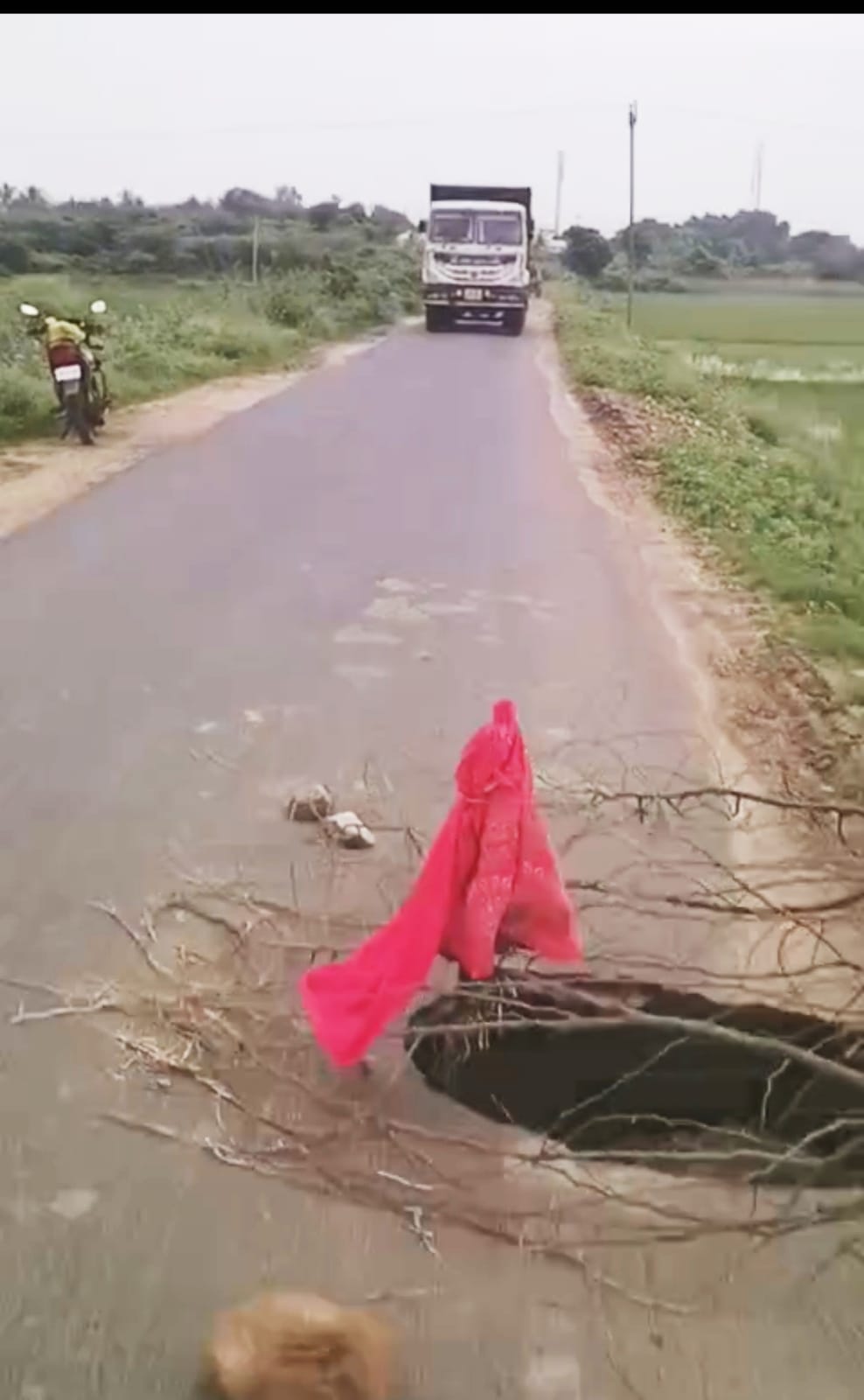నడి రోడ్డుపై బ్రిడ్జికి రంధ్రం వాహనాలు రాకపోకలు అంతరాయం