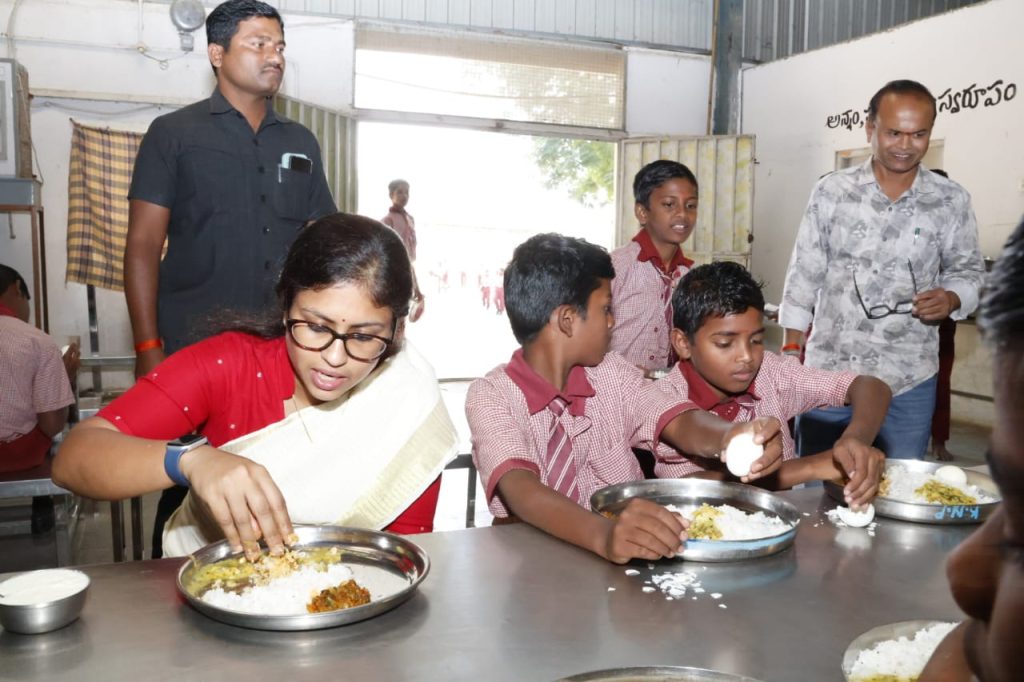 విద్యార్థులతో కలిసి భోజనం చేసిన పేట కలెక్టర్.