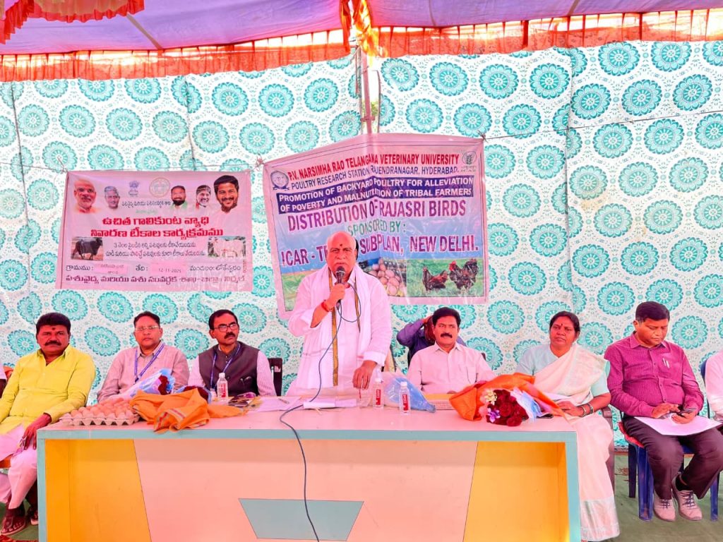 ఈ రోజు బుధవారము రోజున లోకేశ్వరం మండలంలోని నరసింహ నగర్ తండా గ్రామంలో పి.వి. నరసింహ రావు తెలంగాణ వెటర్నరీ యూనివర్సిటీ పౌల్ట్రీ రీసెర్చ్ స్టేషన్ రాజేంద్రనగర్ హైదరాబాద్, వారి ఆధ్వర్యంలో ఏర్పాటు చేసిన గిరిజన రైతుల పేదరిక నిర్మూలన మరియు పోషకాహార లోపం కోసం పౌల్ట్రీని ప్రోత్సహించడంలో భాగంగా రాజశ్రీ కోళ్ల పంపిణీ కార్యక్రమానికి ముఖ్య అతిథిగా ముధోల్ శాసన సభ్యులు పవార్ రామారావు పటేల్ గారు పాల్గొని రాజశ్రీ కోళ్ల పంపిణీ చేయడం జరిగింది.