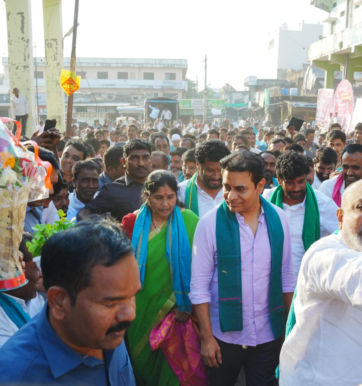 నిర్మల్ జిల్లా భైంసా మార్కెట్ యార్డు కేంద్రంలో పత్తి కొనుగోలు సంక్షోభంపై కేంద్ర, రాష్ట్ర ప్రభుత్వాల నిర్లక్ష్యంతో రైతులు పడుతున్న ఇబ్బందులను స్వయంగా తెలుసుకొని… మీడియా సమావేశంలో మాట్లాడుతున్న KTR , కార్యక్రమంలో పాల్గొన్న జోగు రామన్న ,అనిల్ జాదవ్ ,జాన్సన్ నాయక్ , మరియు ముధోల్ BRS నాయకులు డా పడకంటి రమాదేవి , విలాస్గాదెవార్ ,కిరణ్ కొమ్రేవార్ మరియు కార్యకర్తలు కార్యక్రమంలో భారీగా పాల్గొన్న రైతులు మరియు రైతు సంఘం నాయకులు