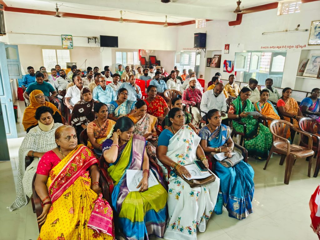 కేంద్రంలోని బీజేపీ ప్రభుత్వం గత 11 సంవత్సరాల కాలంలో పెట్టుబడిదారులకు కార్పొరేషన్ ఊడిగం చేస్తూ కార్మికులను నయా బానిసలుగా చేస్తూ ఉందని కార్మిక వర్గం చైతన్యమై పెట్టుబడిదారీ సమాజానికి ముగింపు పలకాలని కార్మిక రాజ్య స్థాపనకై ప్రతి ఒక్క కృషి చేయాలని సిఐటియు జిల్లా ప్రధాన కార్యదర్శి ఏ నాగరాజు అన్నారు.స్థానిక సిఐటియు కార్యాలయం నందు సిఐటియు పట్టణ మహాసభ సిఐటి అధ్యక్షులు లక్ష్మణ్ అధ్యక్షత న జరిగింది ఈ కార్యక్రమంలో సిఐటియు జిల్లా అధ్యక్షులు వి. ఏసురత్నం, జిల్లా ఉపాధ్యక్షులు తోట మద్దులు, సిఐటియు పట్టణ కార్యదర్శి కే మహమ్మద్ గౌస్, సిఐటియు సీనియర్ నాయకులు శ్రీనివాసమూర్తి, సిఐటియు పట్టణ ఉపాధ్యక్షులు నరసింహులు సునీత, సుజాత, శివమ్మ లతోపాటు హమాలీ యూనియన్ నాయకులు, కార్యకర్తలు వందమందికి పైగా పాల్గొనడం జరిగింది. ముందుగా పట్టణ మహాసభ ప్రారంభానికి ముందుగా సిఐటియు జెండాను సిఐటియు సీనియర్ నాయకులు, ఉపాధ్యక్షులు తోట మద్దులు ఎగరవేయడం జరిగింది. అనంతరం సిఐటియు జిల్లా ప్రధాన కార్యదర్శి నాగరాజు మాట్లాడుతూ గత 11 సంవత్సరాల కాలంలో కేంద్రంలోని నరేంద్ర మోడీ ప్రభుత్వం పెట్టుబడిదారులకు కార్పొరేట్ సంస్థలకు ఊడిగం చేస్తూ కార్మికులకు బ్రిటిష్ కాలం నాటి నుండి ఉన్న 44 కార్మిక చట్టాలను కుదింపు చేసి నాలుగు సివిల్ కోడ్ లుగా చేసి కార్మికులను నయా బానిసలుగా చేయాలని పరిశ్రమల లో యాజమాన్యాలు చెప్పింది వినాలి ఇచ్చిందే తీసుకోవాలి సమ్మె చేసే హక్కు అడిగి హక్కు లేకుండా చేస్తుందని దీనికి వ్యతిరేకంగా దేశవ్యాప్తంగా జూలైలో జరిగిన సమ్మెలో 30 కోట్ల మంది కార్మికుల పాల్గొని మోడీ ప్రభుత్వానికి హెచ్చరిక పంపడం జరిగిందని కార్మికుల జోలికి వస్తే సహించేది లేదన్న సంకేతాన్ని హెచ్చరికను కార్మిక లు సమ్మె రూపంలో తెలియజేసినారని ప్రభుత్వం కార్మికుల కు సంబంధించిన వ్యతిరేక విధానాలను అవలంబించాలంటే భయపడే పరిస్థితిలో ఉందని అన్నారు అదేవిధంగా ప్రభుత్వ రంగ సంస్థల ప్రైవేటు కన్నా వేగంగా చేసి ప్రజలకు ప్రభుత్వ రంగ సంస్థల ద్వారా అందించాల్సిన సేవను దూరం చేయడం జరుగుతుందని అక్కడ పనిచేసే ఉద్యోగులకు ఉద్యోగ భద్రత లేకుండా పోతుందని ఇప్పటికే ప్రభుత్వ శాఖల్లో ఉన్న ఖాళీ పోస్టులను భర్తీ చేయడం లేదని స్కీం వర్కర్లకు కనీస వేతనం 22 వేల రూపాయలు ఇవ్వాలని ప్రభుత్వ ఉద్యోగులుగా గుర్తించాలని రిటైర్మెంట్ బెనిఫిట్స్ సౌకర్యాలు కల్పించాలని ఆందోళనలు చేస్తున్న ప్రభుత్వం సమస్యలను పరిష్కారానికి చూపడం లేదని అన్నారు ఆంధ్రప్రదేశ్లో ఉన్న కూటమి ప్రభుత్వం ఎనిమిది గంటల పని విధానాన్ని రద్దు చేస్తూ 13:15 పని విధానాన్ని అమలుకు అసెంబ్లీలో ప్రవేశపెట్టడం చాలా దుర్మార్గమని కార్మికులను రోబోలుగా పని చే