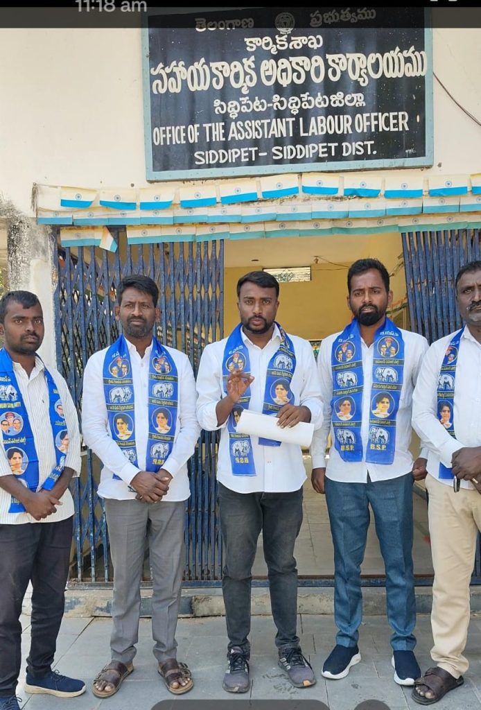 సిద్దిపేట పట్టణ కేంద్రంలో ఉన్న సహాయ కార్మిక లేబర్ అధికారి కార్యాలయంలో ప్రజా సమస్యలను విన్నవించడానికి బహుజన్ సమాజ్ పార్టీ నాయకులు వెళ్లగా, అక్కడ అధికారులు అందుబాటులో లేకపోవడం తీవ్ర ఆందోళన కలిగించింది. జిల్లా అధికారి గారికి ఫోన్ చేసినప్పటికీ, స్పందన లేకుండా ఉండటం ప్రజా సమస్యల పట్ల నిర్వాహక వ్యవస్థ నిర్లక్ష్యాన్ని స్పష్టంగా చూపుతోందని బీఎస్పీ నాయకులు ఎద్దేవా చేశారు. గత 15 రోజులుగా సంబంధిత అధికారిని సంప్రదించడానికి ఎన్నోసార్లు ప్రయత్నించినప్పటికీ, ఫోన్ రెస్పాన్స్‌ లేకపోవడం, కార్యాలయానికి వచ్చినా అక్కడ అధికారి అందుబాటులో లేకపోవడం అత్యంత దురదృష్టకరమని తెలిపారు. ఈ నిర్లక్ష్యంతో రోజూ కార్యాలయానికి వచ్చే కార్మికులు, కూలీలు మరియు సాధారణ ప్రజలు తీవ్రమైన ఇబ్బందులు ఎదుర్కొంటున్నారు. ఫిర్యాదు చేయడానికి కూడా అధికారులు లేకపోవడం పరిపాలనా వైఫల్యమని బీఎస్పీ తీవ్రంగా పేర్కొంది. బహుజన్ సమాజ్ పార్టీ తరఫున జిల్లా అధ్యక్షుడు పుల్లూరు ఉమేష్ మాట్లాడుతూ “ప్రజలకు సేవ చేయాల్సిన అధికారి, ప్రజలను నిర్లక్ష్యం చేస్తున్నాడు. తక్షణమే సంబంధిత సహాయ కార్మిక లేబర్ అధికారిపై చర్యలు తీసుకోవాలి. లేనిపక్షంలో బహుజన్ సమాజ్ పార్టీ పెద్ద ఎత్తున ఆందోళన కార్యక్రమాలు చేపడుతుంది” అని హెచ్చరించారు.కార్మికుల సమస్యలకు సంబంధించిన ఫిర్యాదులు, ప్రమాద బీమా, ఓవర్‌టైమ్, వేతన వివాదాలు నెలల తరబడి పెండింగ్‌ లో ఉన్నాయని అధికారి నిర్లక్ష్యంతో జిల్లా కార్మిక శ్రామికులకు న్యాయం అందడం లో ఆటంకం కలుగుతోందని ప్రభుత్వ పాలసీల అమలు కూడా సక్రమంగా జరగడం లేదని బాధ్యతా రాహిత్యాన్ని కొనసాగిస్తే జిల్లా ప్రజాభ్యున్నతి దెబ్బతింటుందని పేర్కొన్నారు.ఈ కార్యక్రమంలో జిల్లా ఇంచార్జ్ వెంకటేష్, జిల్లా ప్రధాన కార్యదర్శి కొండనోళ్ల నరేష్, నాయకులు కనక ప్రసాద్ తదితరులు పాల్గొన్నారు.