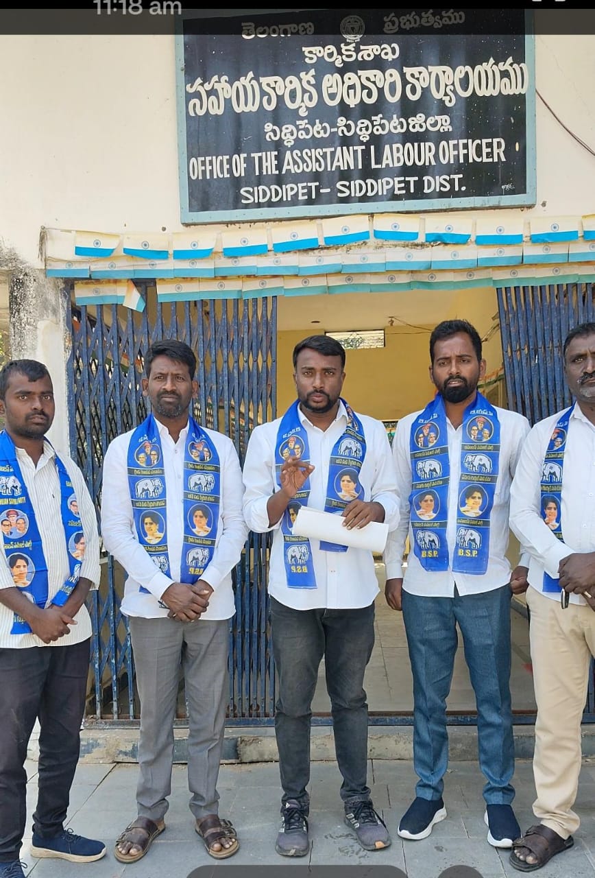 సిద్దిపేట పట్టణ కేంద్రంలో ఉన్న సహాయ కార్మిక లేబర్ అధికారి కార్యాలయంలో ప్రజా సమస్యలను విన్నవించడానికి బహుజన్ సమాజ్ పార్టీ నాయకులు వెళ్లగా, అక్కడ అధికారులు అందుబాటులో లేకపోవడం తీవ్ర ఆందోళన కలిగించింది. జిల్లా అధికారి గారికి ఫోన్ చేసినప్పటికీ, స్పందన లేకుండా ఉండటం ప్రజా సమస్యల పట్ల నిర్వాహక వ్యవస్థ నిర్లక్ష్యాన్ని స్పష్టంగా చూపుతోందని బీఎస్పీ నాయకులు ఎద్దేవా చేశారు. గత 15 రోజులుగా సంబంధిత అధికారిని సంప్రదించడానికి ఎన్నోసార్లు ప్రయత్నించినప్పటికీ, ఫోన్ రెస్పాన్స్ లేకపోవడం, కార్యాలయానికి వచ్చినా అక్కడ అధికారి అందుబాటులో లేకపోవడం అత్యంత దురదృష్టకరమని తెలిపారు. ఈ నిర్లక్ష్యంతో రోజూ కార్యాలయానికి వచ్చే కార్మికులు, కూలీలు మరియు సాధారణ ప్రజలు తీవ్రమైన ఇబ్బందులు ఎదుర్కొంటున్నారు. ఫిర్యాదు చేయడానికి కూడా అధికారులు లేకపోవడం పరిపాలనా వైఫల్యమని బీఎస్పీ తీవ్రంగా పేర్కొంది. బహుజన్ సమాజ్ పార్టీ తరఫున జిల్లా అధ్యక్షుడు పుల్లూరు ఉమేష్ మాట్లాడుతూ “ప్రజలకు సేవ చేయాల్సిన అధికారి, ప్రజలను నిర్లక్ష్యం చేస్తున్నాడు. తక్షణమే సంబంధిత సహాయ కార్మిక లేబర్ అధికారిపై చర్యలు తీసుకోవాలి. లేనిపక్షంలో బహుజన్ సమాజ్ పార్టీ పెద్ద ఎత్తున ఆందోళన కార్యక్రమాలు చేపడుతుంది” అని హెచ్చరించారు.కార్మికుల సమస్యలకు సంబంధించిన ఫిర్యాదులు, ప్రమాద బీమా, ఓవర్టైమ్, వేతన వివాదాలు నెలల తరబడి పెండింగ్ లో ఉన్నాయని అధికారి నిర్లక్ష్యంతో జిల్లా కార్మిక శ్రామికులకు న్యాయం అందడం లో ఆటంకం కలుగుతోందని ప్రభుత్వ పాలసీల అమలు కూడా సక్రమంగా జరగడం లేదని బాధ్యతా రాహిత్యాన్ని కొనసాగిస్తే జిల్లా ప్రజాభ్యున్నతి దెబ్బతింటుందని పేర్కొన్నారు.ఈ కార్యక్రమంలో జిల్లా ఇంచార్జ్ వెంకటేష్, జిల్లా ప్రధాన కార్యదర్శి కొండనోళ్ల నరేష్, నాయకులు కనక ప్రసాద్ తదితరులు పాల్గొన్నారు.