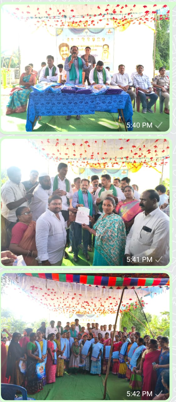 ఇల్లందు :శనివారంసోదరిమణులకు ఎమ్మెల్యే పంపిణమీ అందరి చల్లని దీవెనలతో తెలంగాణ రాష్టంలో ఇందిరమ్మప్రభుత్వాన్నితీసుకువచ్చారు మహిళ సోదరిమణులు ఆర్ధికంగా అభివ్రృధ్ధి చెందాలని ముఖ్యమంత్రి రేవంత్ రెడ్డి ప్రభుత్వం వడ్డిలేని బుణాలు అందచేస్తుందమీరందరు తీసుకువచ్చిన ఇందిరమ్మ ప్రభుత్వం పేద ప్రజలకు సన్నబియ్యం,ఉచితవిద్యుత్,ఉచిత బస్సు,సన్నవడ్లకు బోనస్,రేషన్ కార్డులు,ఇందిరమ్మ ఇళ్ళు ఇస్తుంది,గత పాలకలుకనిసంఆలోచనకుడాచేయలేదు.తెలంగాణరాష్టమహిళసోదరిమణులనుప్రోత్సహించేందుకు రాష్ట ప్రభుత్వం చీరల పంపిణికి శ్రీకారం చుట్టిందివిరికే కాకుండా రాష్టంలో ఉన్న ప్రతి మహిళ సోదరిమణులందరికి చీరలు పంపిణి చేస్తాంబయ్యారం మండలంకు సీతారామ ప్రాజెక్ట్ నీళ్ళు తీసుకువచ్చేందుకు ఆలోనచేస్తున్నాంబయ్యారం మండలంలో గ్రృహ అవసరాలకు,రైతుల కోసం నూతన 3 సబ్ స్టేషన్లు తీసుకువచ్చాం.గత పాలకులది మాటల ప్రభుత్వం,మాది చేతల ప్రభుత్వంరాబోయే స్ధానిక సంస్ధలలో మంచి చేసేప్రజాప్రభుత్వన్నిఆశీర్వదించండి గ్రామాలనుఅభివ్రృధ్ధిచేసుకుందాంకట్టుగూడెం గ్రామంలో వడ్ల కొనుగోలు కేంద్రం ఎమ్మెల్యేచే ఫ్రారంభంబయ్యారం మండలం కు చెందిన 29 మంది లభ్ధిధారులకు సిఎంఆర్ఎఫ్ చెక్కులు ఎమ్మెల్యేచే పంపిణిబయ్యారం మండలం కట్టుగూడెం గ్రామంలోసహకార పరపతి సంఘంఅధ్వర్యంలో ఏర్పాటు చేసిన వడ్ల కొనుగోలు కేంద్రం ఫ్రారంభోత్సవానికి ముఖ్య అతిధిగాహజరైఫ్రారంభించి తెలంగాణ రాష్ట్ర ప్రభుత్వం మహిళ స్వయంసహయకసంఘాలసభ్యులను ప్రోత్సహించేందుకు బయ్యారం మండల కేంద్రం లో ఏర్పాటు చేసిన ఉచిత ఇందిరా మహిళ శక్తి చీరల పంపిణికిముఖ్య అతిధిగా హజరై మహిళ సోదరిమణులకు చీరలు పంపిణి చేసిపేద ప్రజలకు వైధ్యం ఖర్చులు భారంకాకుండా ప్రజా ప్రభుత్వం ముఖ్యమంత్రి సహాయనిధి పేరిట అందచేస్తున్న చెక్కులను బయ్యారం మండలంకుచేందిన29మందిలభ్ధిధారులకు చెక్కులను పంపిణి చేసిన ఇల్లందు నియోజకవర్గం శాసన సభ్యులు కోరం కనకయ్య ఈ యొక్క కార్యక్రమంలో ఇల్లందు మార్కెట్ కమిటి చైర్మెన్బానోత్ రాంబాబు బయ్యారం సొసైటి చైర్మెన్ మూల మధుకర్ రెడ్డి,బయ్యారం మండల పార్టీ అధ్యక్షులు కంబాల ముసలయ్య, జిల్లా ప్రధాన కార్యదర్శి భుక్యా ప్రవిణ్ నాయక్,మహిళ జిల్లా ప్రధాన కార్యదర్శి కొండపల్లి నిర్మల,IKP DPM శ్రీకాంత్,SI మెహబూబి,APM సుభాష్,తిరుమల శ్రీ,స్వయం సహయక సంఘాల మండల అధ్యక్షురాలు నిర్మల,నాయకులు రాసమల్ల నాగేశ్వరావు,బరిగెల ఉపేందర్,చెరుకుపల్లి నర్సయ్య,పగడాలశ్రీను,కేసఉపేందర్,గుగులోత్ మంగిలాల్,భుక్యా రవి నాయక్,మహిళ సంఘాల సభ్యులు తదితరులు పాల్గోన్నారు