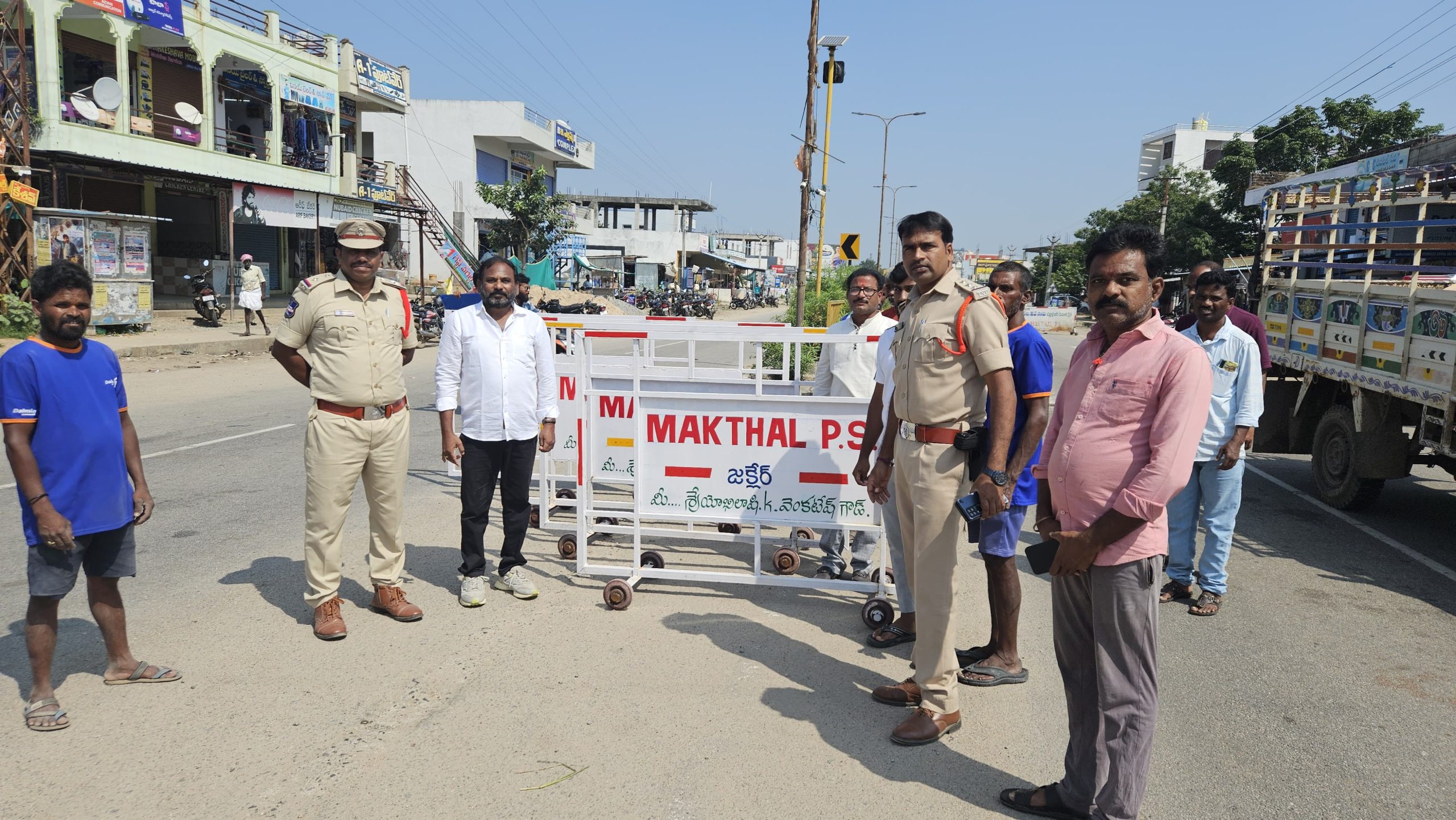 మక్తల్ మండలం జక్లైర్ పరిధిలో రోడ్డుప్రమాదాలు ఇటీవల పెరుగుతున్న నేపథ్యంలో, ట్రాఫిక్ నియంత్రణను బలోపేతం చేసి ప్రజల ప్రాణాలకు రక్షణ కల్పించాలనే బాధ్యతతో జక్లైర్కు చెందిన వెంకటేష్ గౌడ్ సమాజ సేవలో భాగంగా 4 నూతన ట్రాఫిక్ బారికేడ్లను విరాళంగా అందించారు. ప్రజల భద్రత కోసం ముందుకు వచ్చి ఇలాంటి సేవ చేయడం చాలా ఆదర్శప్రాయమని మక్తల్ సీఐ రామ్ లాల్ పేర్కొన్నారు.ఈ సందర్భంగా జక్లైర్ వద్ద ఏర్పాటు చేసిన కార్యక్రమంలో మక్తల్ సీఐ రామ్లాల్, ఎస్ఐ భాగ్యలక్ష్మి రెడ్డి పాల్గొన్నారు. ఈ సందర్భంగా వారు మాట్లాడుతూ…జక్లైర్ ప్రాంతంలోని ప్రధాన రహదారిపై రోజూ వాహనాల రద్దీ ఎక్కువగా ఉంటుందని,