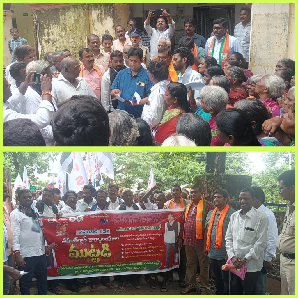 పయనించే సూర్యుడు సెప్టెంబర్ 15 మధిర న్యూస్ మధిర ఎమ్మార్వో కార్యాలయం నందు ఎమ్మార్పీఎస్ వీహెచ్ పి ఎస్ ఆధ్వర్యంలో ఎమ్మార్వో కార్యాలయాన్ని దిగబ్బంధం, వినతి పత్రం