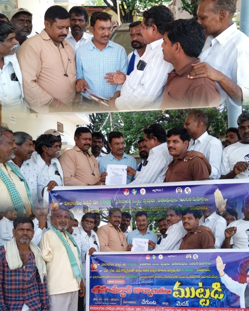వికలాంగుల వృద్ధుల వితంతుల పింఛన్ దారుల పింఛన్ పెంపుకై జిల్లా సమావేశం పయనించే సూర్యుడు న్యూస్ సెప్టెంబర్ 16 మెదక్ జిల్లా చేగుంట మండలం ప్రతినిధి కాశబోయిన