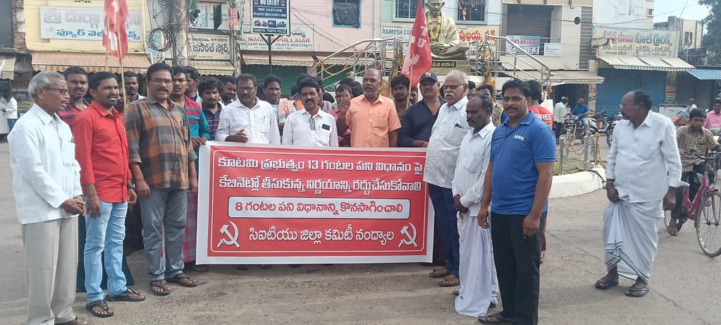 కోయిలకుంట్ల పట్టణంలోని స్థానిక ఆర్టీసీ బస్టాండ్ నందు నిన్నటి రోజున ఆళ్లగడ్డ డిపోకు సంబంధించిన ప్రైవేట్ బస్సు డ్రైవర్ పై దాడిని ఖండిస్తూ సిఐటియు ఆధ్వర్యంలో నిరసన తెలుపడం జరిగింది. ఈ సందర్భంగా సిఐటియు జిల్లా నాయకులు ఎం సుధాకర్ , ప్రైవేట్ బస్సు యూనియన్ డిపో సెక్రటరీ వెంకటేస్ మాట్లాడుతూ నిరుద్యోగ యువత మంచి చదువులు చదువుకొని ఉద్యోగాలు లేక ప్రైవేటు డ్రైవర్లుగా పనిచేస్తూ కుటుంబాన్ని పోషించడం జరుగుతుంది. ఇటువంటి పరిస్థితుల్లో రాష్ట్ర ప్రభుత్వం వారికి […]
