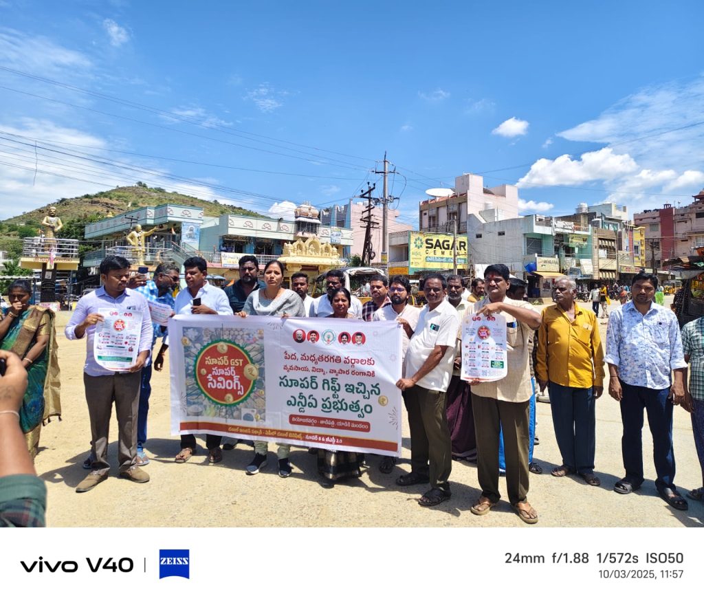 పయనించే సూర్యుడు న్యూస్ అక్టోబర్ 3(శర్మాస్ వలి మండల రిపోర్టర్ యాడికి) మండల కేంద్రమైన యాడికి లోని గాంధీ విగ్రహం దగ్గర జిఎస్టి గురించి సేల్ టాక్స్